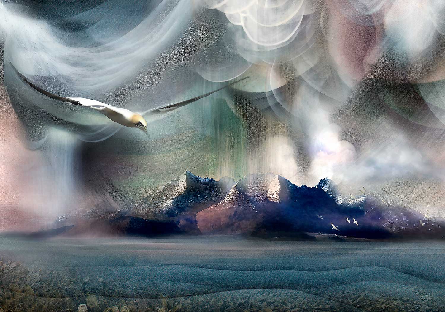 Esther's distinctive style is immediately recognisable, her skyline silhouettes, coastal scenes, landmarks and bothys bring a fresh new approach to the subject, each one veiled in tranquility.