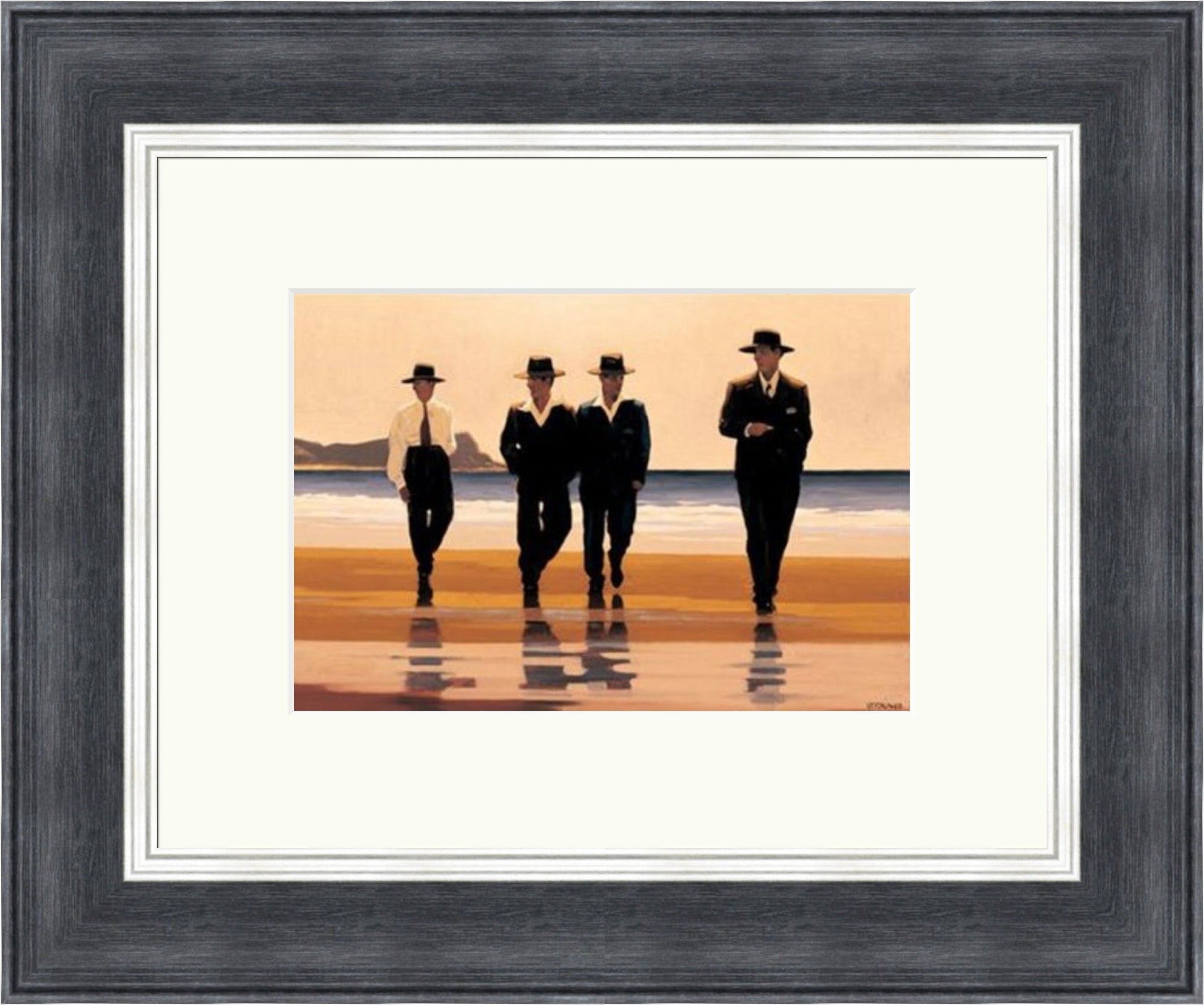 We are an official stockists of Jack Vettriano prints, all of his prints are framed in our workshop in Scotland, sizes show the overall sizes including frames, and are approximate.
