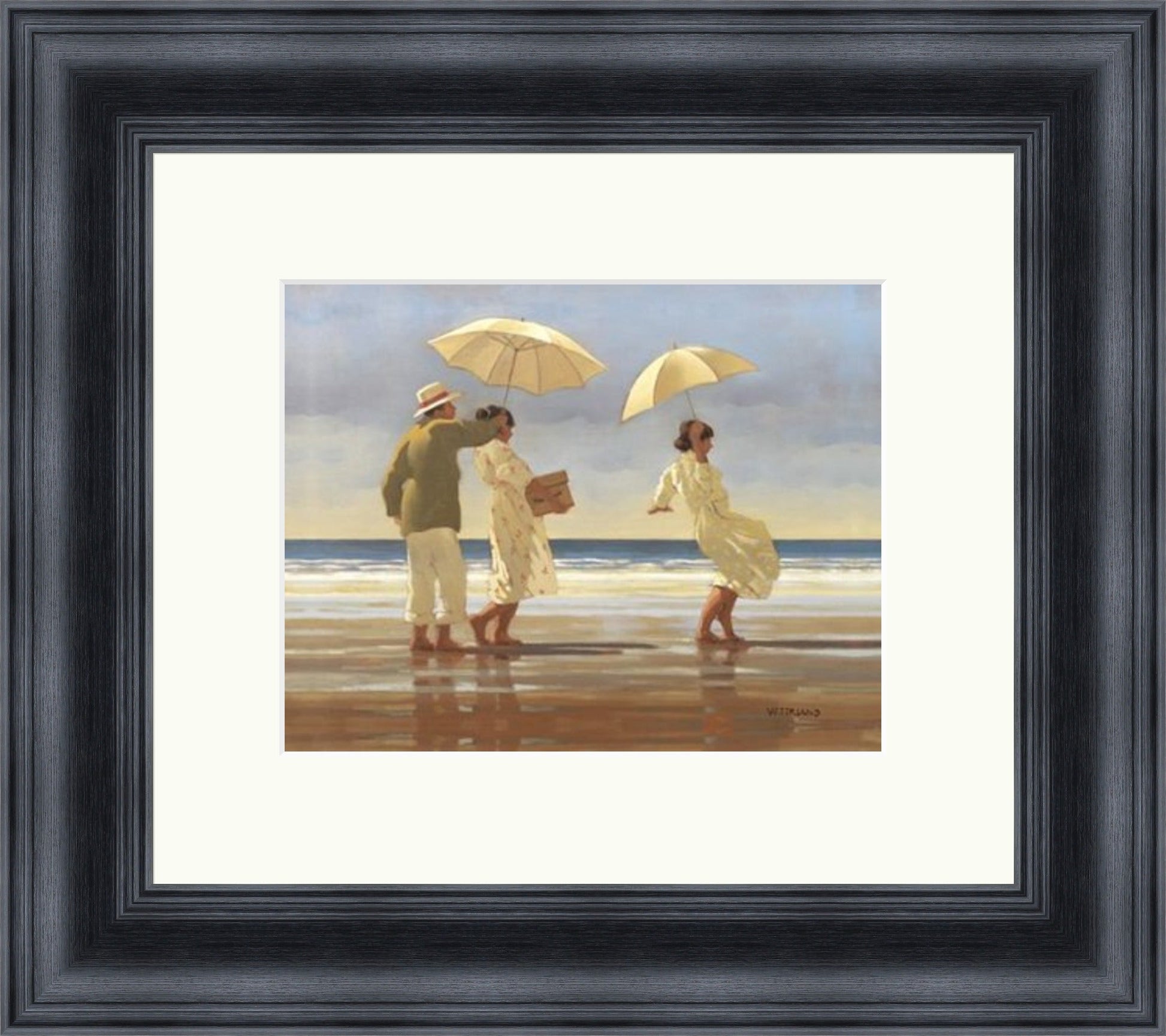 We are an official stockists of Jack Vettriano prints, all of his prints are framed in our workshop in Scotland, sizes show the overall sizes including frames, and are approximate.